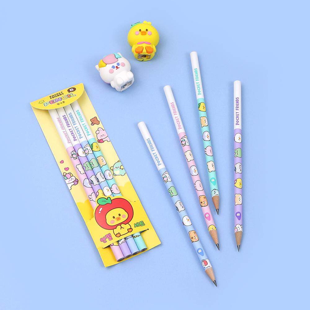 B심 연필 세트 4본 원형 펜슬 귀여운 디자인 초등 학생 어린이 예쁜 필기구 단체 선물