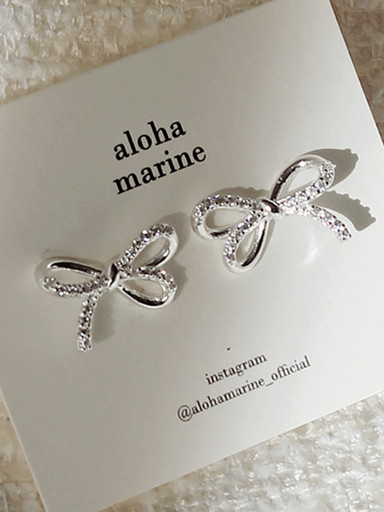 [*주문폭주] 925 실버 클라씨 큐빅 리본 귀걸이