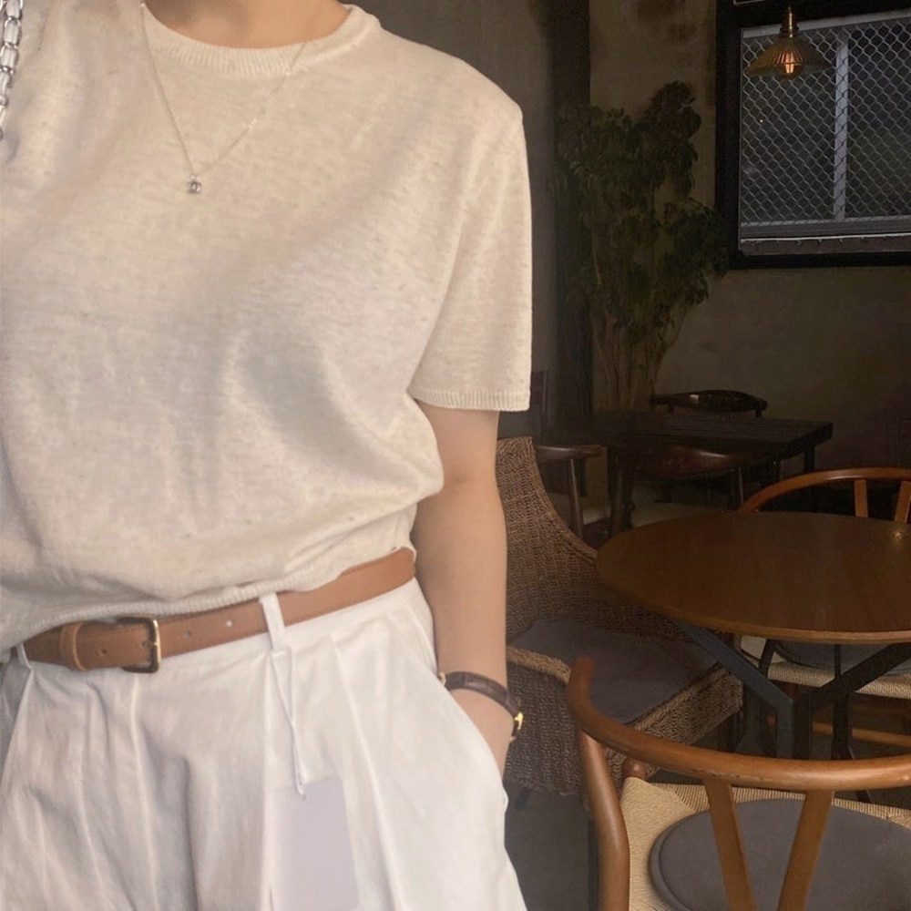 포케 린넨 썸머 라운드넥 반팔 베이직 니트 티셔츠