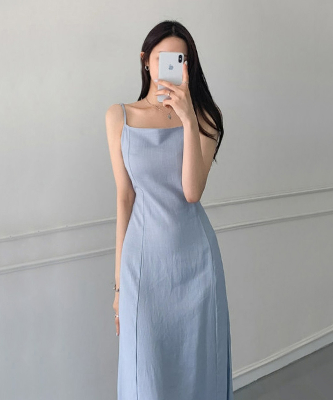 [당일발송] 청순 단아 스트랩 끈나시 린넨 롱원피스 - 3color