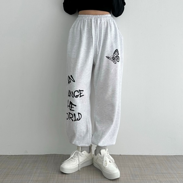 [1+1할인/핏짱예쁨]롱해보이는 배색 나비 영문 레터링 조거 밴딩 추리닝 트레이닝 팬츠 3color