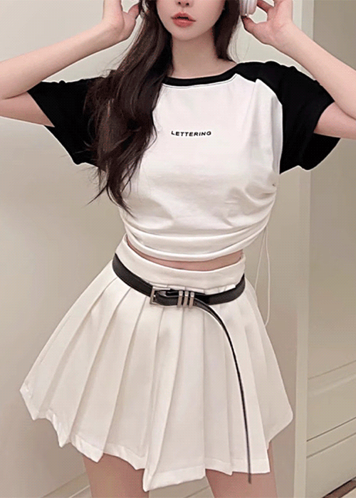 [길이조절가능!!] 라운드넥 영어 알파벳 스펠링 셔링 끈 리본 크롭 반팔 티셔츠