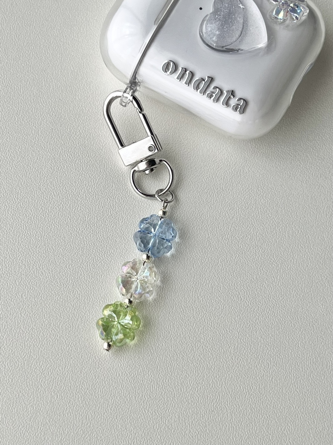 (3color) 행운의 비즈 네잎클로버 키링, 핸드폰키링, 핸드폰스트랩
