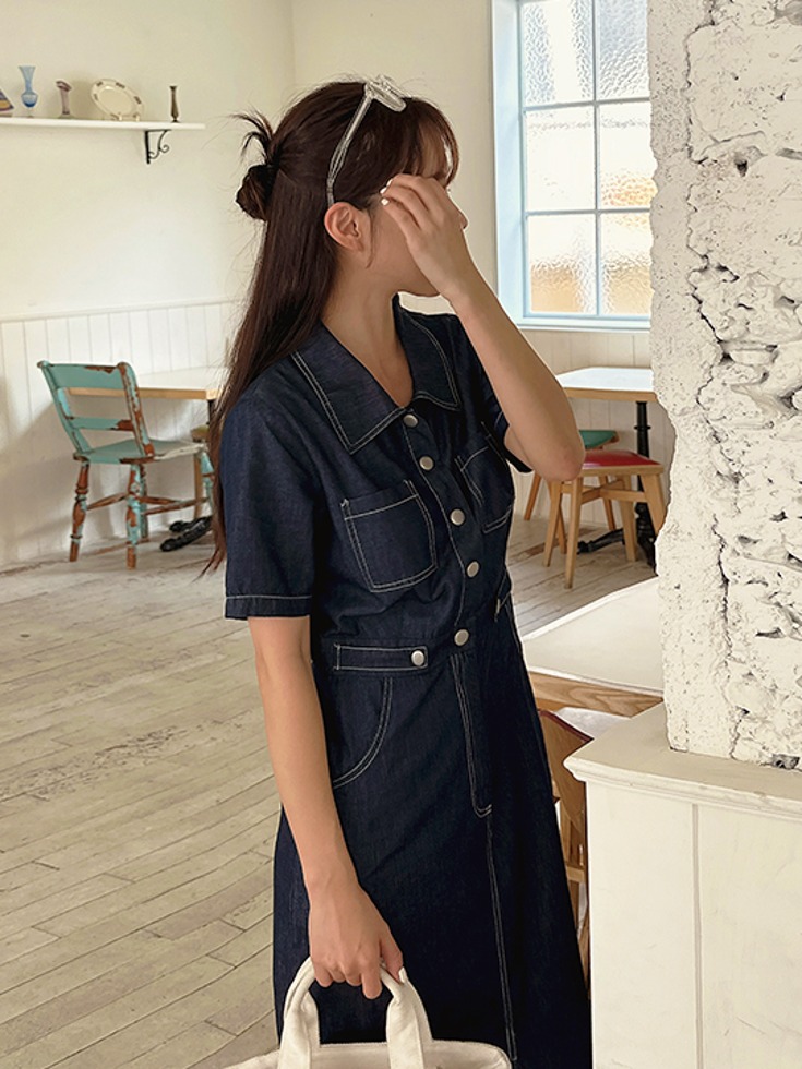 [1천장 돌파✨] 리텐브 트임 썸머 데님 맥시 원피스( 여름-신상-썸머룩-바캉스룩-여행룩-개강룩-데님원피스-여름원피스-반팔원피스-롱원피스-카라넥-빅사이즈-자체제작-여름하객룩)