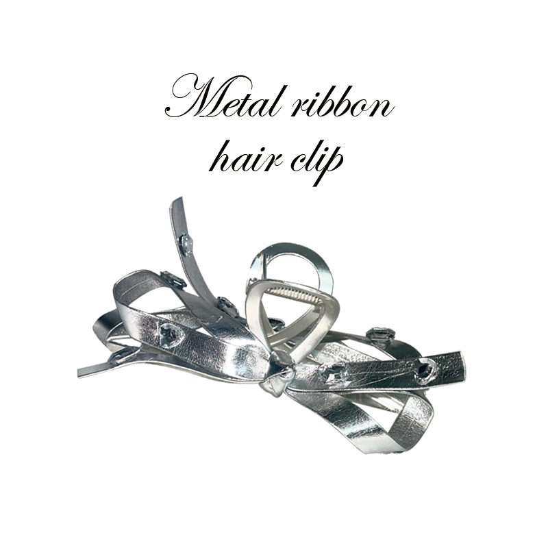 [2개 set] Metal ribbon hair clip, 메탈 리본 헤어 클립 큐빅헤어클립 집게핀 메탈 집게핀 y2k 발레코어 큐빅 헤어핀