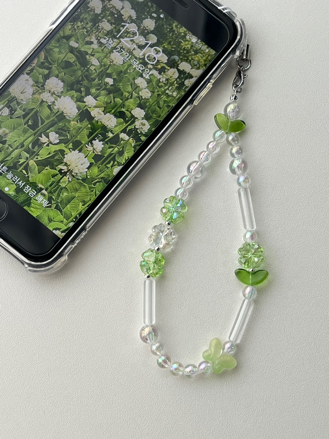 [리뉴얼] 행운의 비즈 네잎클로버 핸드폰 스트랩, 키링, 핸드폰고리