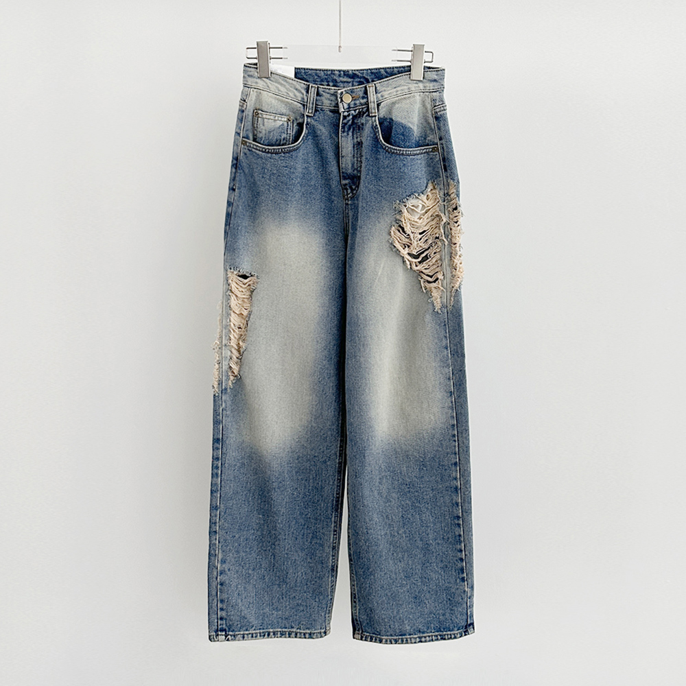 [인생핏/3XL까지] 찢청 찢어진 청바지 하이웨스트 와이드 데님팬츠