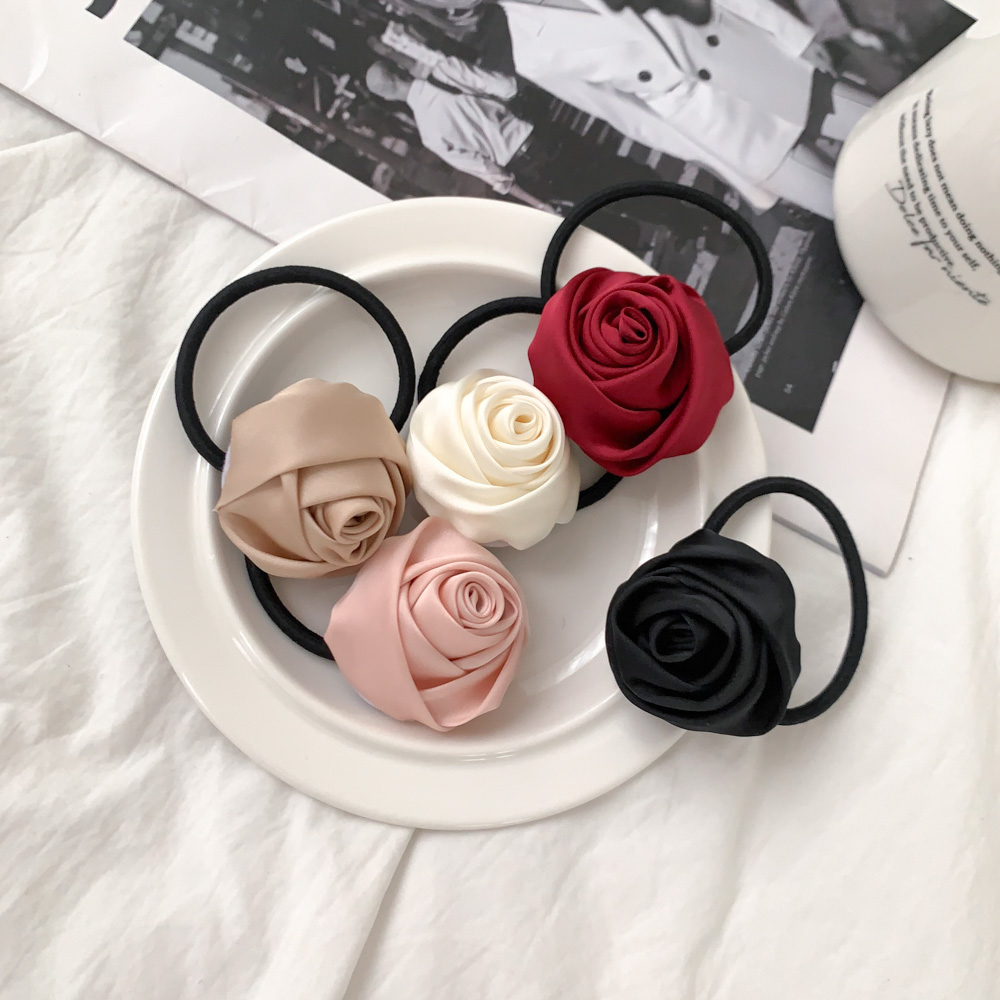 로맨틱 미디 새틴 로즈 발레코어 장미 반묶음 헤어끈 5color