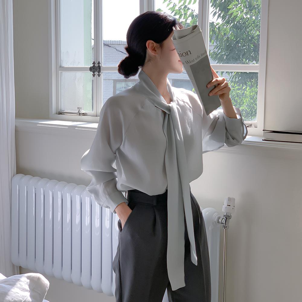 페르니 라운드 글로시 타이 블라우스(하객룩)