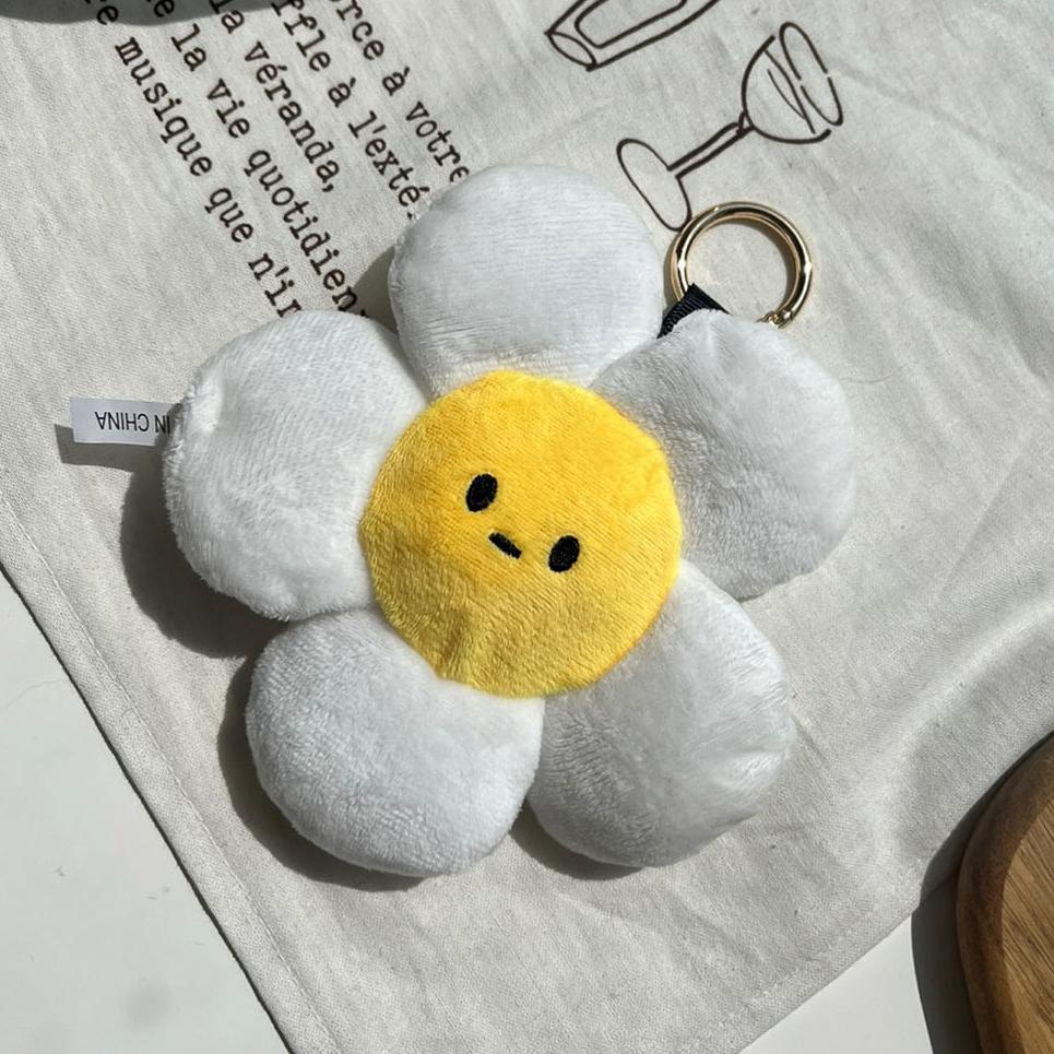 왕크왕귀 데이지 플라워 인형 봉제 키링 가방고리 [귀여운 스마일 꽃 백참 우정 열쇠고리]