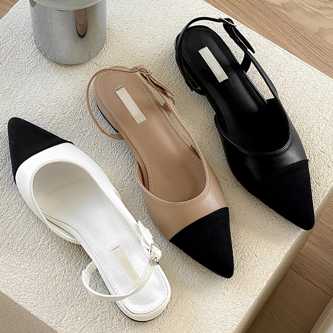 마르덴 스틸레토 배색 콤비 낮은굽 슬링백 (2cm)