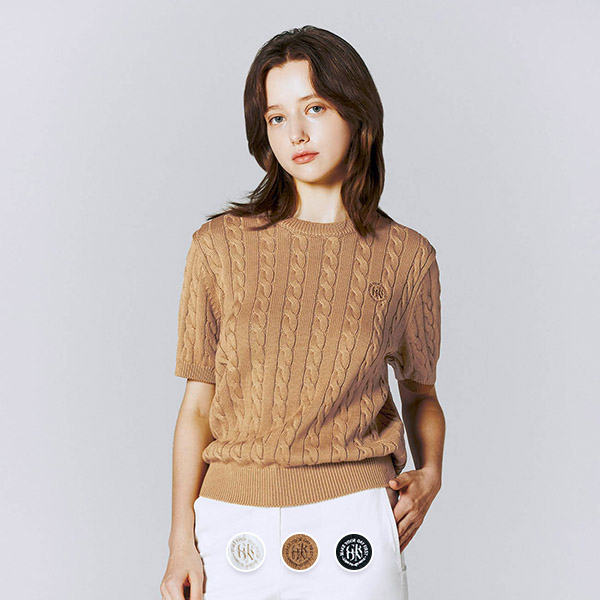 7GG 코튼 케이블 자수 반팔 스웨터 353952