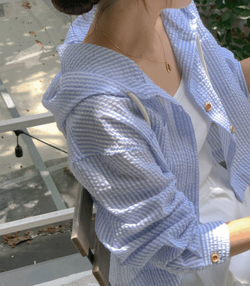 시즌오프!!클리어런스 오늘출발🚚 ★아스티 시어서커 후드셔츠★살안타템셔츠/스트라이프셔츠/여름셔츠/선스크린긴팔셔츠/여름후드/오버핏셔츠/프릴블라우스/출근룩/여행룩
