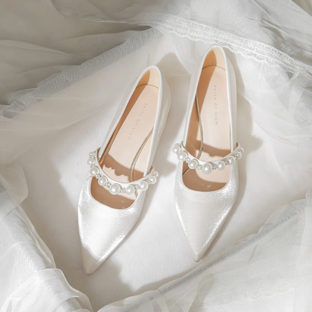 (이벤트상품) 그라테 3,5cm 새틴 결혼식 웨딩 통굽 구두 1color