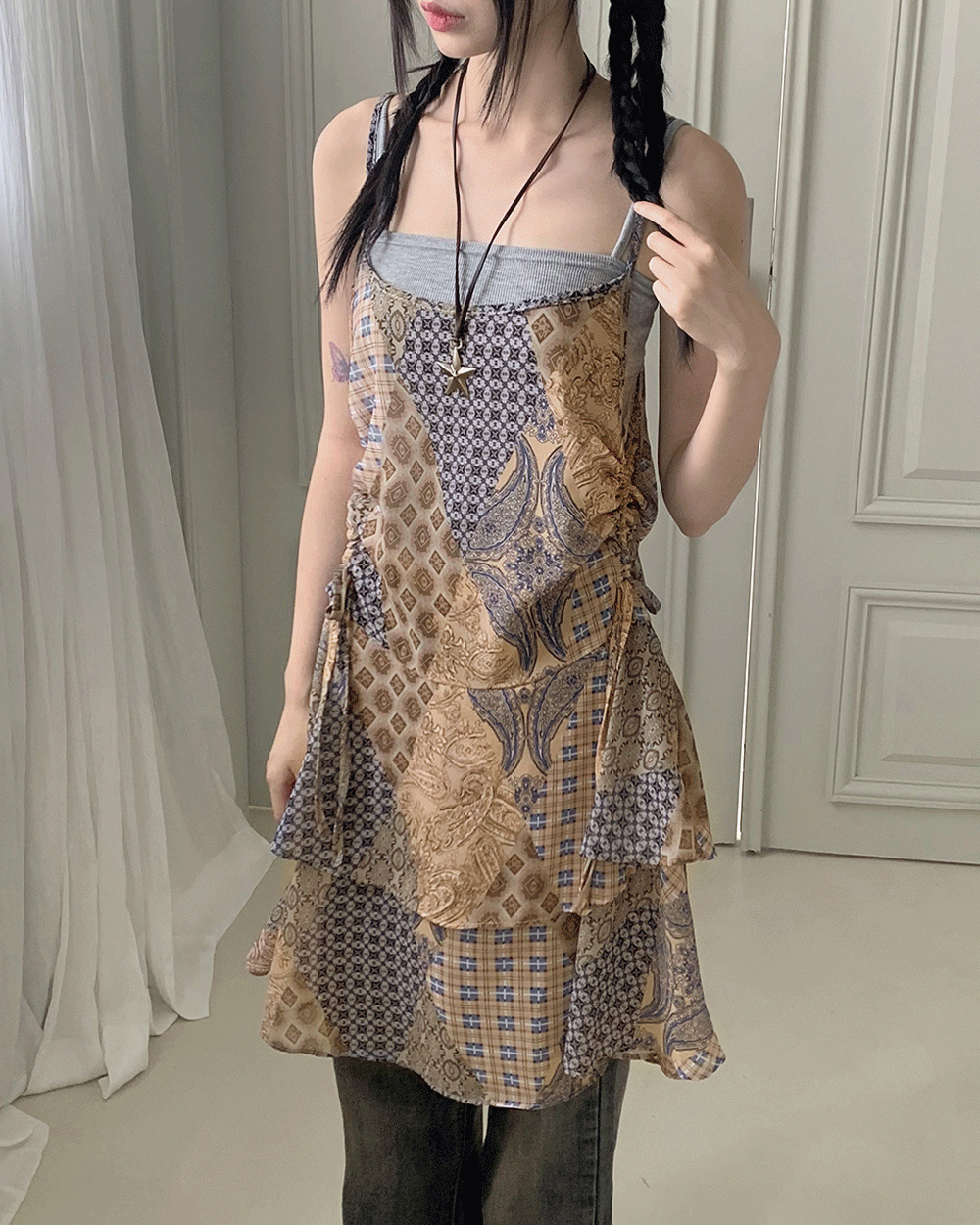 즈겐 보헤미안 셔링 캉캉 레이어드 나시 미디 원피스