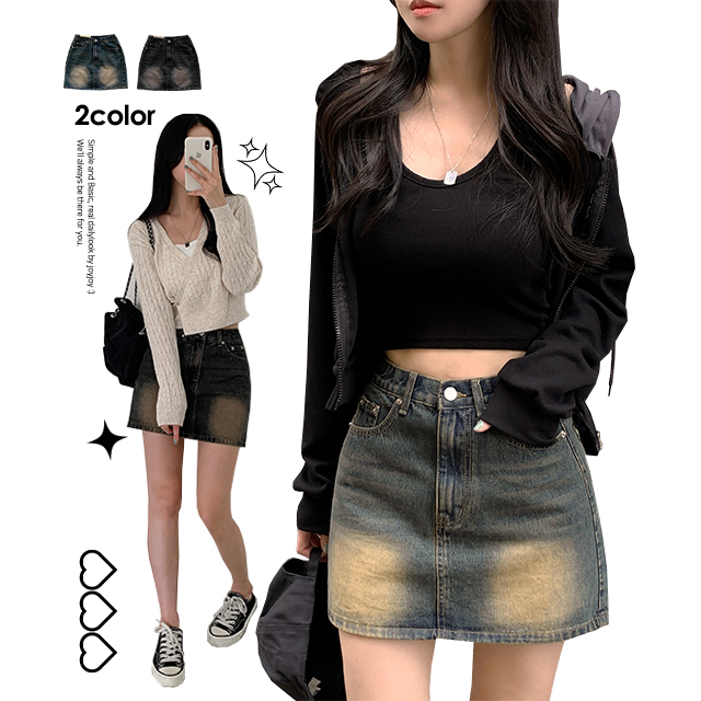 [2기장/S~2XL/속바지O] 퍼스트 젠지룩 브러쉬 데님 y2k 청치마 숏 미니 스커트