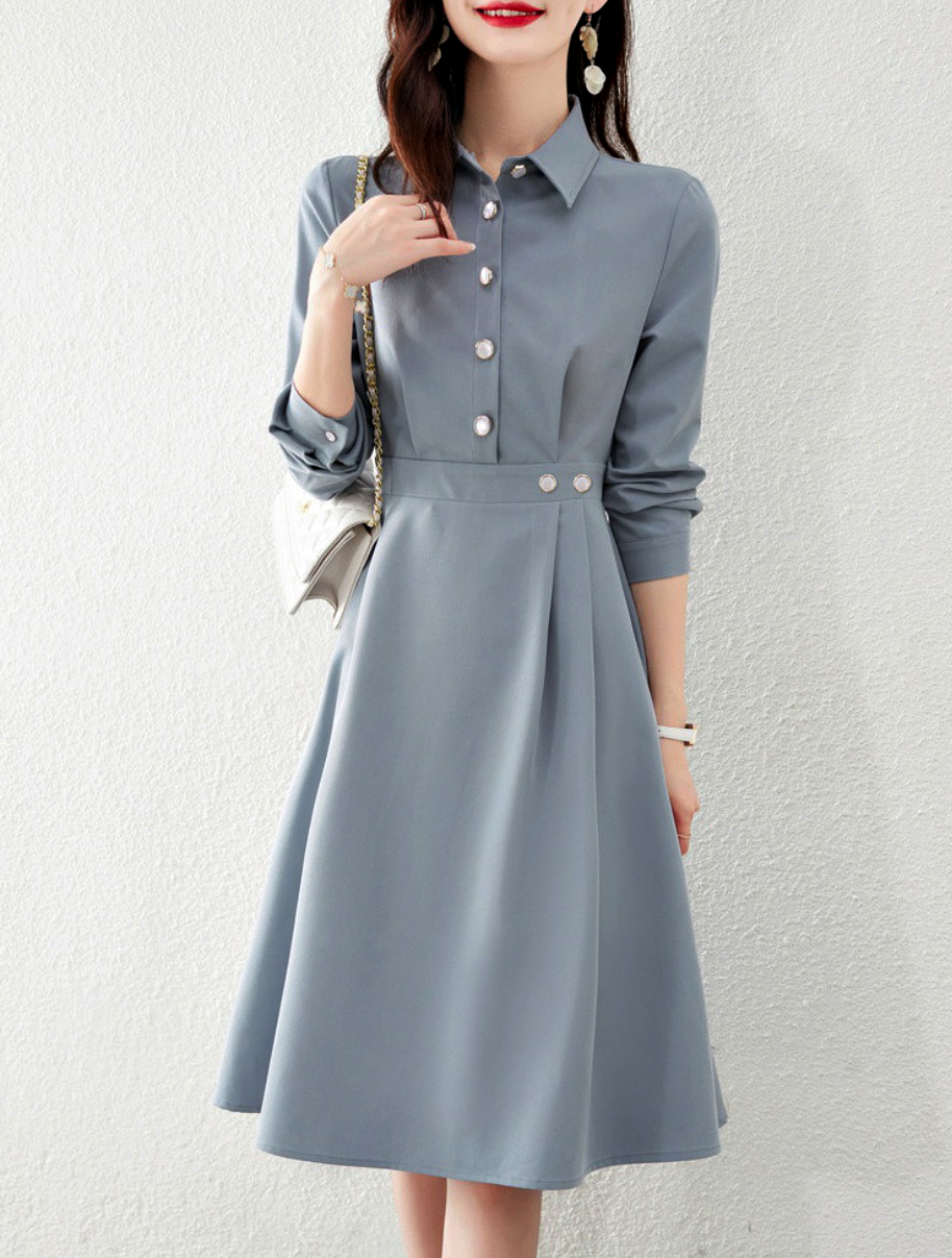 예쁜 허리 라인 여성스러운 A 라인 원피스