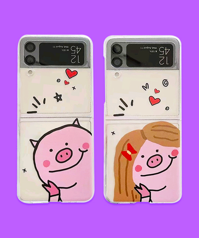 삼성 갤럭시 Z플립5 Z플립4 Z플립3 슬림 투명 하드 귀여운 돼지 커플 캐릭터 지플립5 지플립4 지플립3 제트플립5 제트플립4 제트플립3 플립5 플립4 플립3 케이스