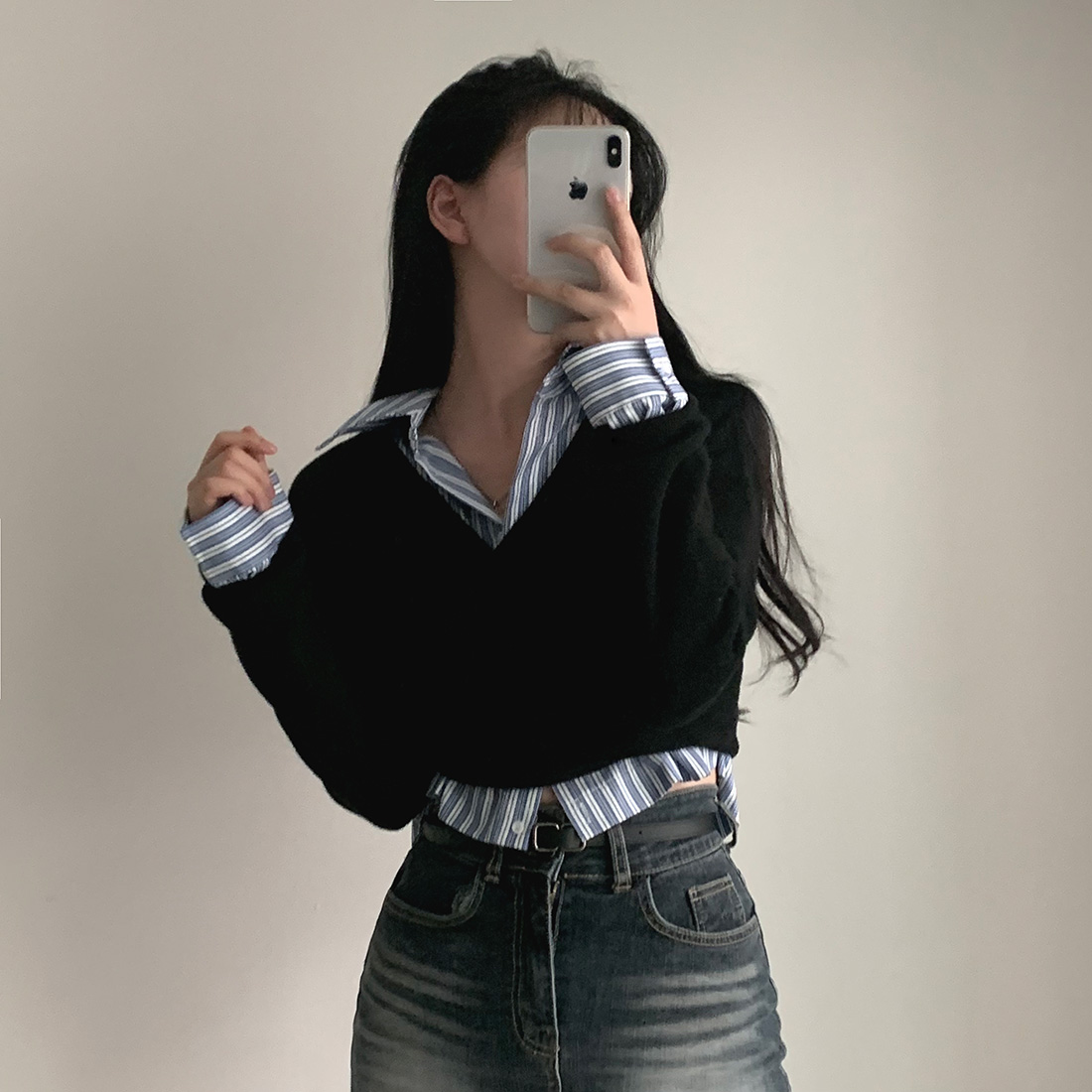폴린 랩 브이넥 크롭 긴팔 니트 - nt