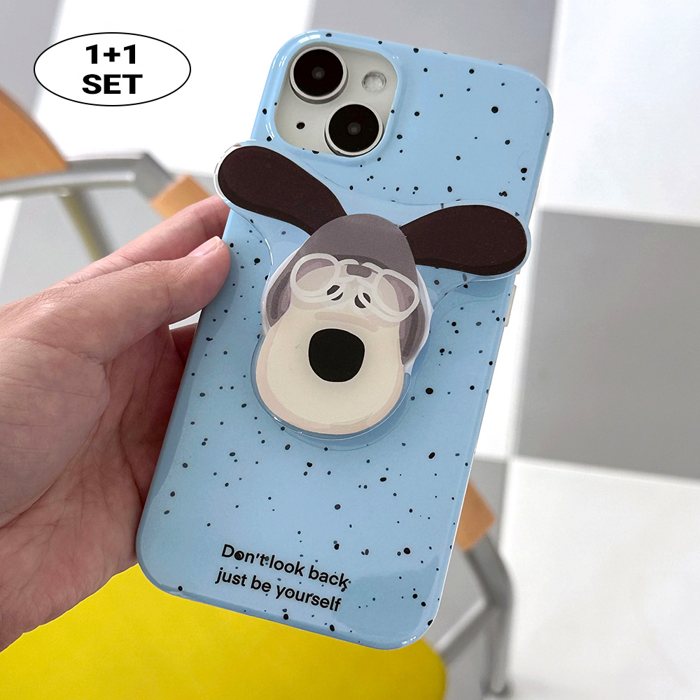 [당일출고] 안경 쓴 강아지 스마트톡 세트 블루 도트 아이폰케이스