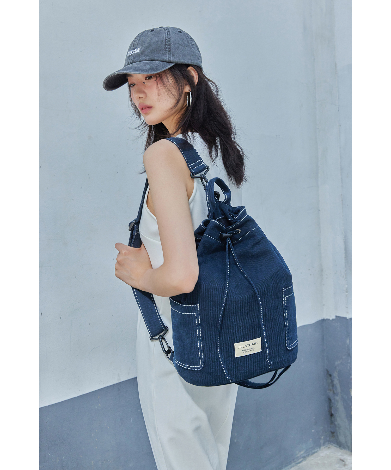 [젤라또] 네이비 스티치장식 면 백팩 (슬링백 겸용)