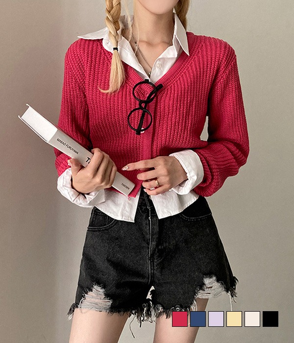 [무료배송] 오오티디 완성, 코코체리 더블 하찌 브이넥 크롭 긴팔 니트 가디건