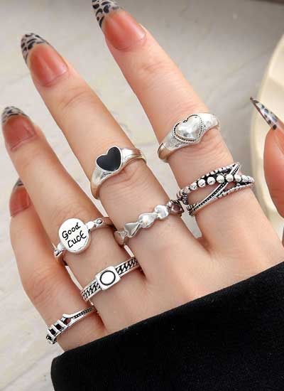 [진짜?이가격?!/7개세트] 굿 블랙 하트 빈티지 반지세트