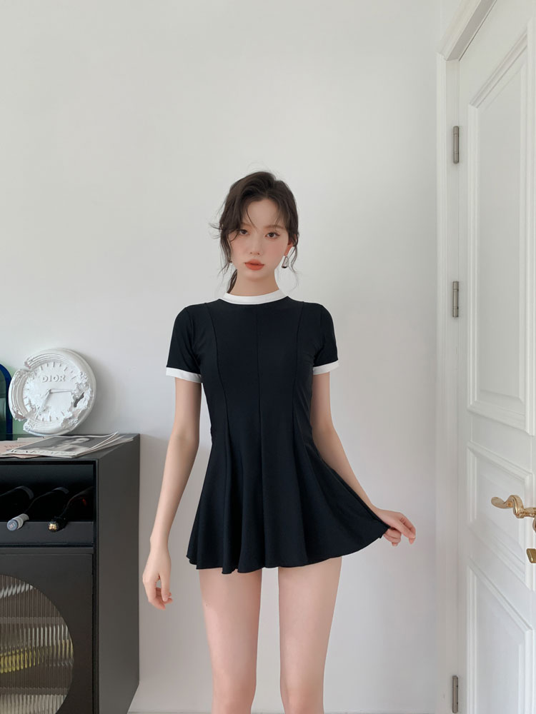 유진 심플 반팔 원피스 블랙 레쉬가드 모노키니 스윔웨어 워터파크 수영장 원피스 모노키니 풀파티 호캉스 온수풀 호텔 발리 제주도 래쉬가드