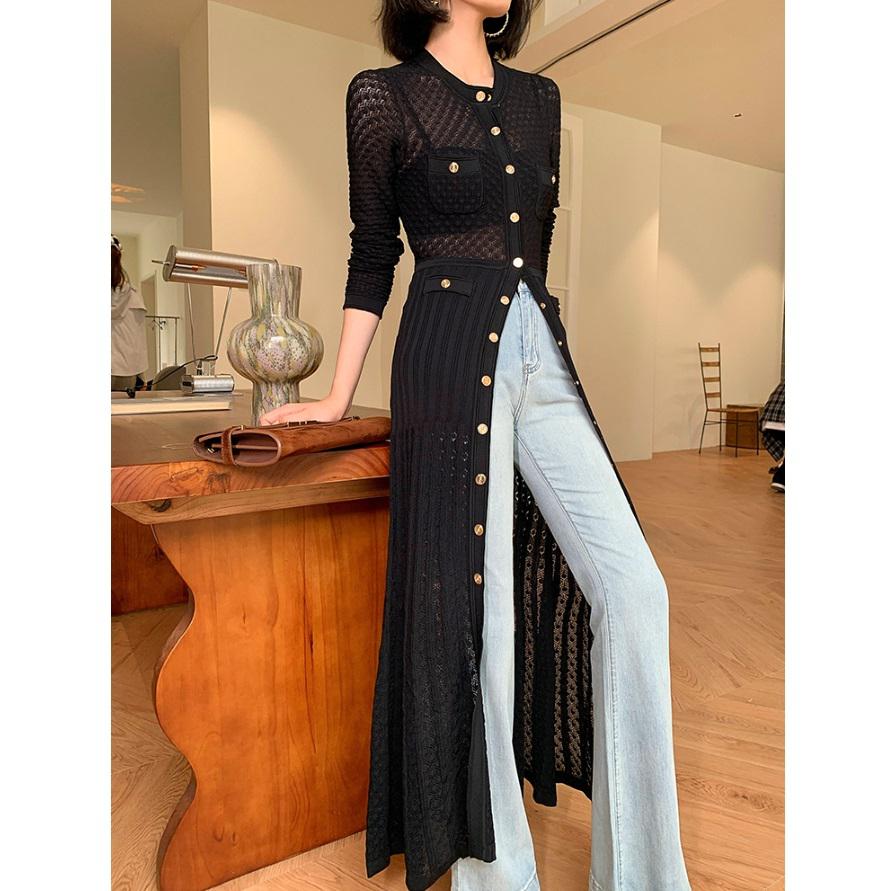 롱가디건 그물 니트 블랙 금장단추 가디건 명품 볼레로