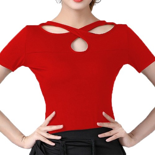 앞뒷면 반팔 X홀 티셔츠 라틴 줌바 방송 라인 댄스복 LD010 다이써유