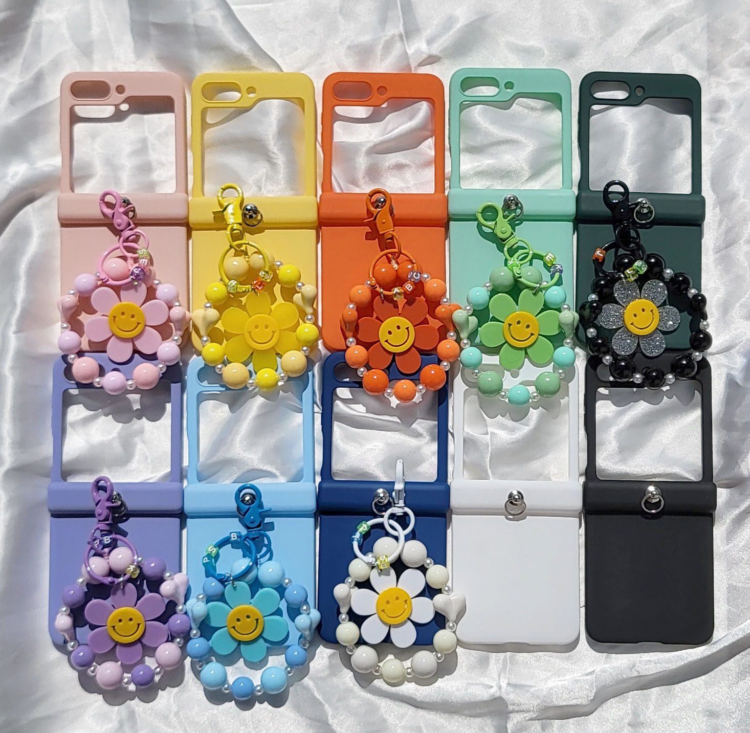 Z플립5 6 7 힌지 보호 케이스 & 이니셜 스마일 플라워 비즈 스트랩 키링