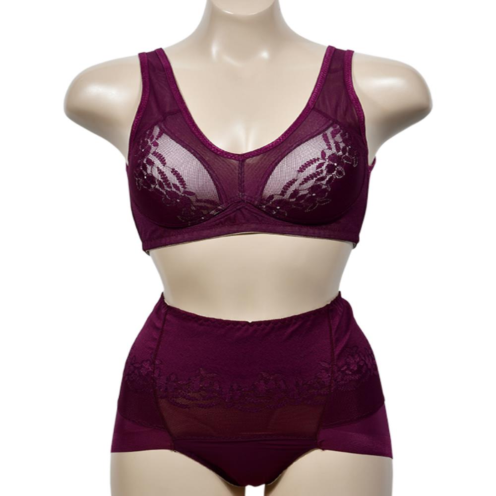 여자 와인 베이지 플라워 패턴 자수 몰드 C컵 속옷