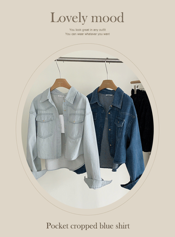 더니보 포켓 크롭 청남방_SH7324 가을 간절기 루즈핏 오버핏 숏 데님 기본 베이직 이지룩 데이트룩 Y2K 올드머니룩 블록코어룩