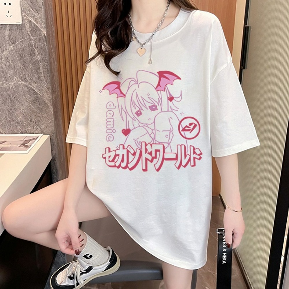 데빌 핑크 오타쿠 애니메이션 오버핏 반팔티셔츠