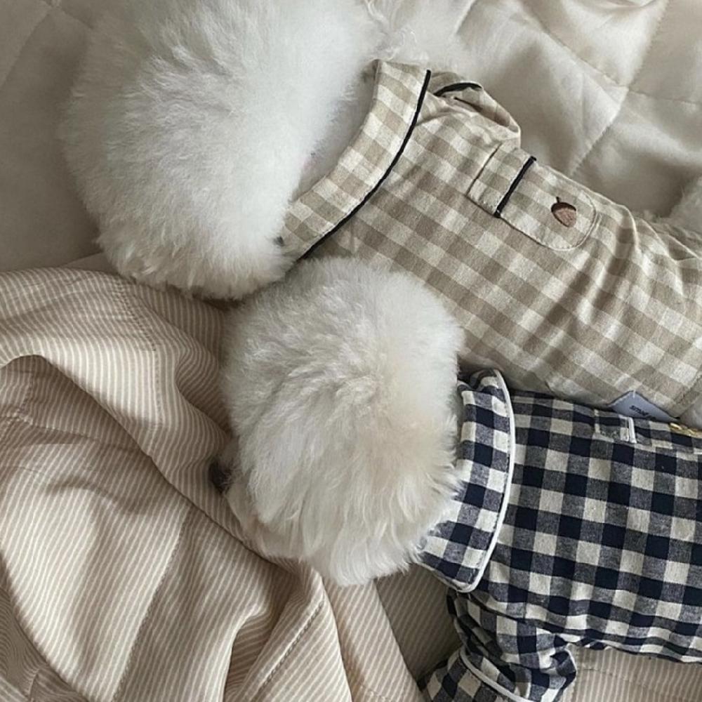 [기간한정세일] 롤업 체크 사계절 파자마 잠옷 (2colors) / 가벼운 소재 강아지옷 긴소매 실내복