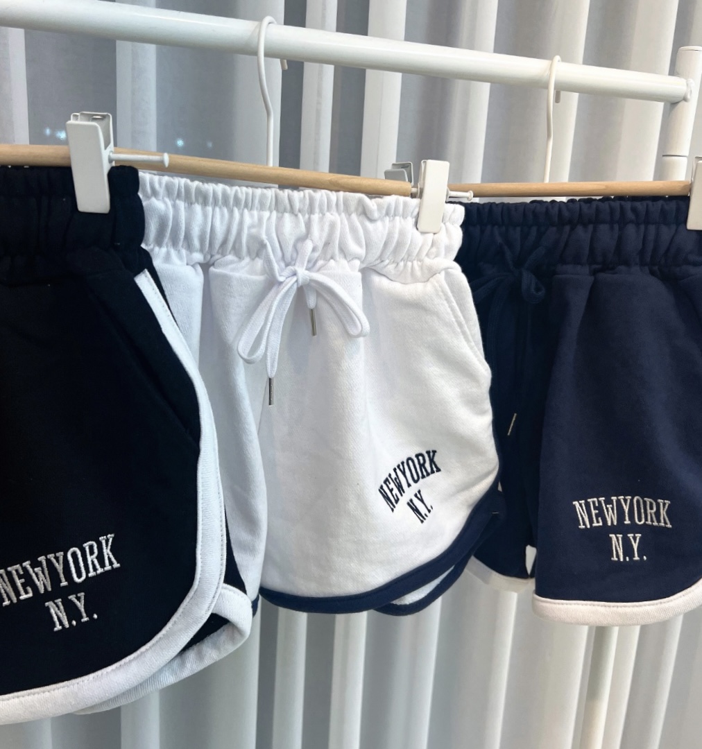 *당일배송/고퀄리티* 뉴욕 레터링 자수 밴딩 숏팬츠 랍빠 하이웨스트 돌핀팬츠 굴림 트레이닝팬츠 츄리닝바지 돌핀바지 수입의류 휴양지 데일리룩 3color