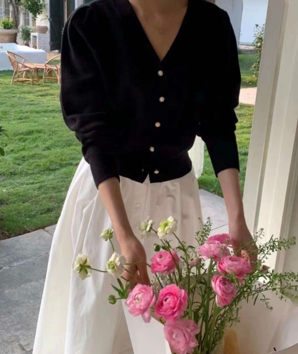 [단독] 라미르 가을 브이넥 진주버튼 퍼프 브이넥 간절기 파스텔 루즈핏 가디건