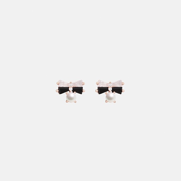 다이애나 블랙 앤 화이트 크리스탈 진주 리본 귀걸이