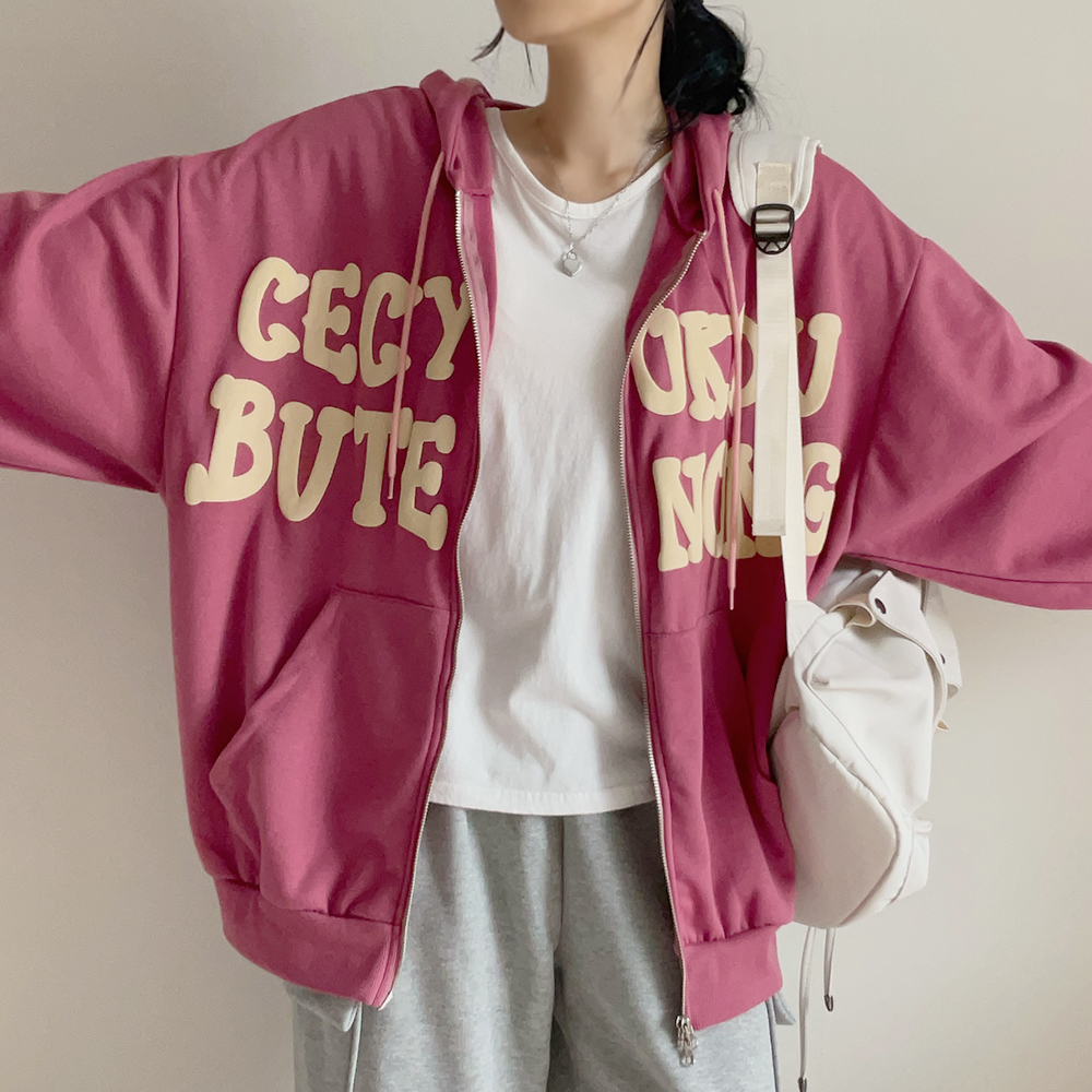 찐박스핏 통통 발포 빅레터링 남여공용 오버핏 후드 집업 4컬러