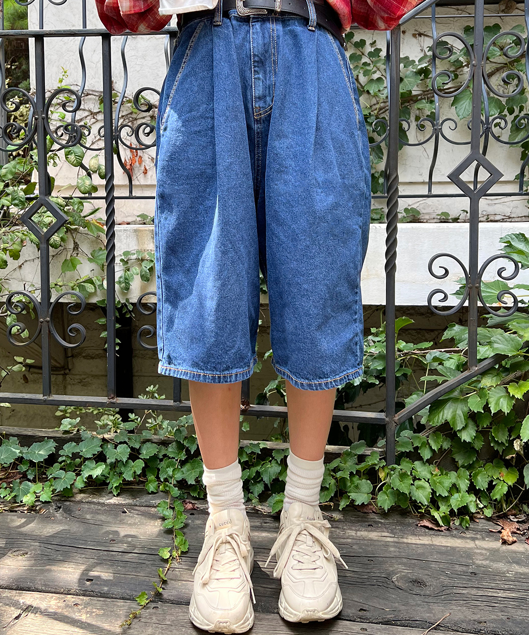 [대학생 코디]가을 와이드 데님 버뮤다팬츠 밴딩 청바지 7부 청반바지 개강룩 진청 연청