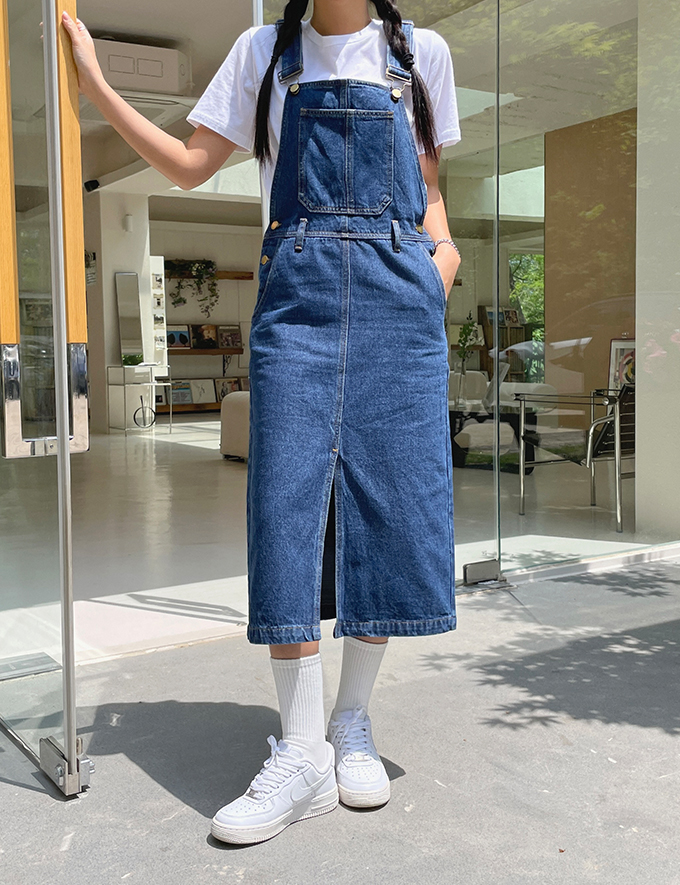 [Made] 리타 데님 오버롤 멜빵 청치마. SK010 [빅사이즈/데님스커트/서스펜더스커트/오버롤/멜빵치마/미디스커트/미디청치마/트임치마/트임청치마/앞트임/슬릿/청멜빵/데님멜빵]