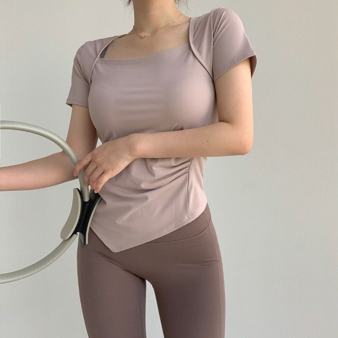 229[무료배송]이유커버업 슬리브 운동복 반팔 필라테스 요가 헬스 레깅스코디 조깅 러닝 비치웨어 여름 가을 핑크베이지 셔링 뱃살커버 똥배커버