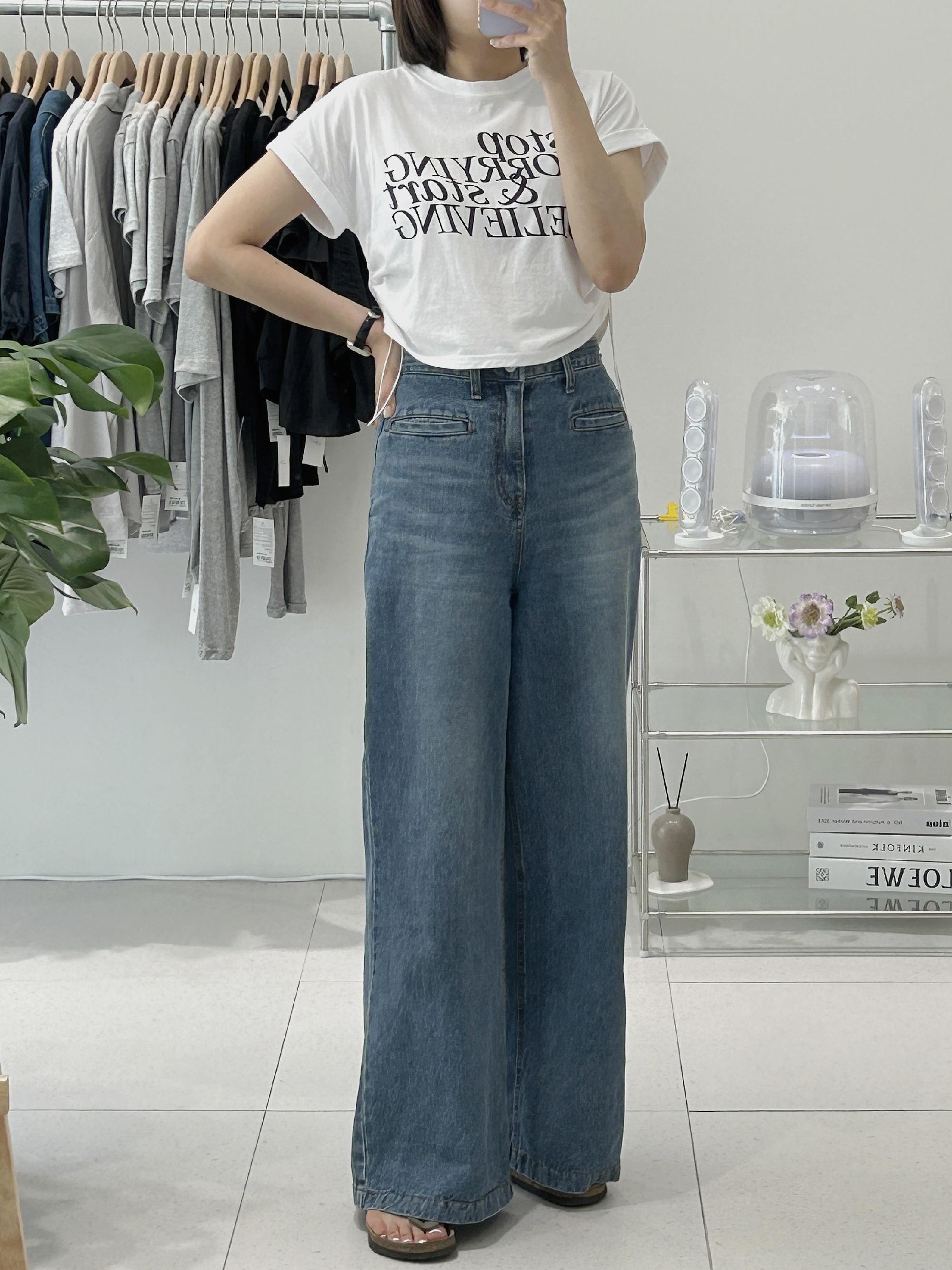 여성 와이드청바지 하이웨스트 진청 통바지 워싱 사계절 키큰여자쇼핑몰