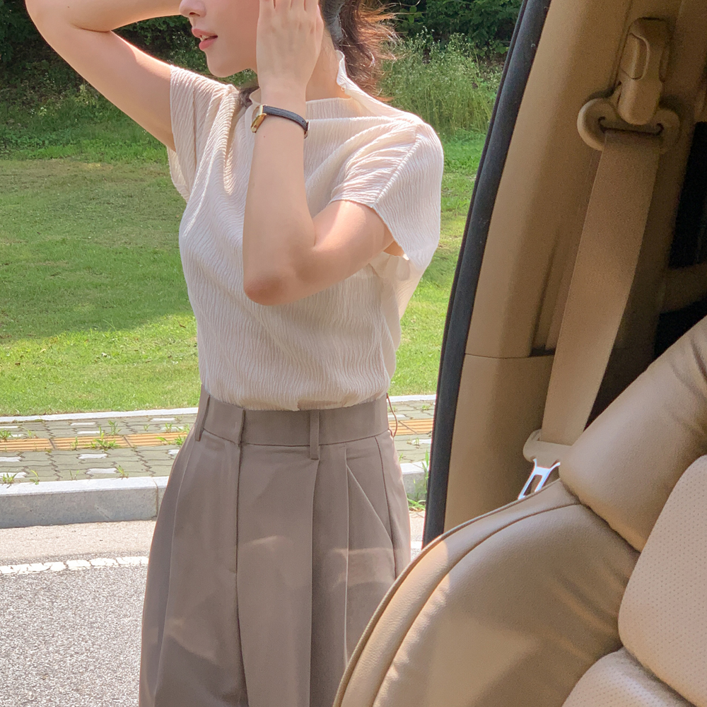 [CRKO] 링클 하프 블라우스 /하객룩 셔링 러블리 블라우스