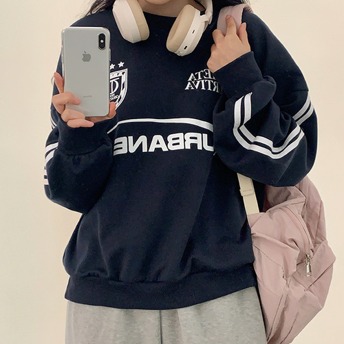 [1+1할인] 배쿠 오버핏 배색 레터링 맨투맨 (4color) [커플맨투맨/빅사이즈/Y2K/개강룩/가을신상/겨울신상]
