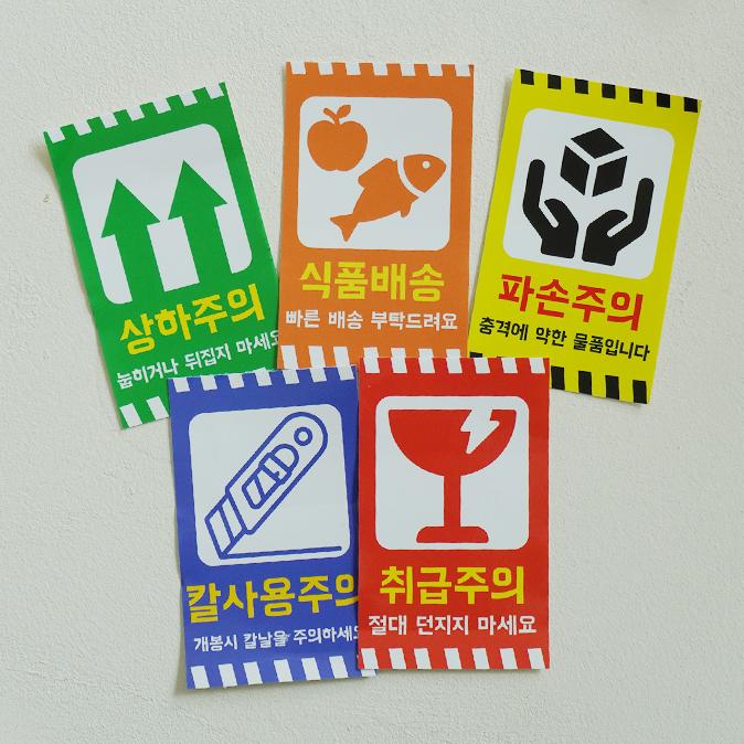 택배 파손주의 취급주의 배송 스티커 5type [FRAGILE 박스 포장 안전 식품 칼사용주의 마크 라벨]