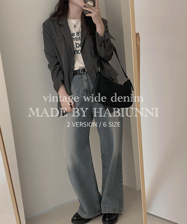 #MADE, 11075 [2기장/키작녀] 그레이쉬 빈티지 중청 난스판 워싱 와이드 롱청바지 : 데님 1color / XS~3XL