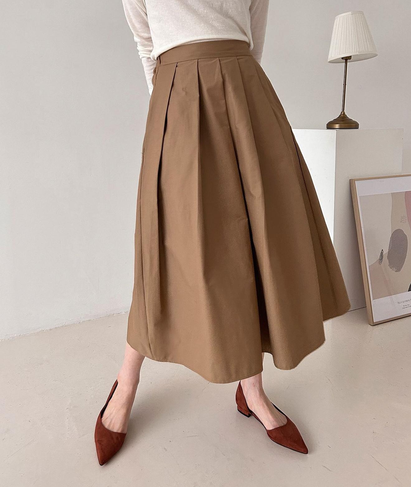 가을신상! 엘레강스 오드리 스커트 브라운 베이지코디 차콜색 먹색 검정 블랙 넓은핀턱치마 롱스커트