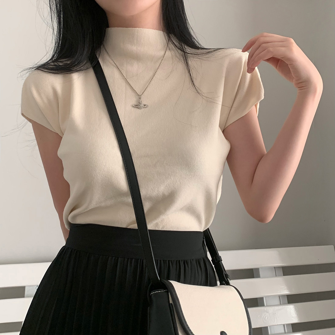 [주문폭주!] 비침 없는 하이디 반목 캡소매 소프느 반팔 니트 - nt / 올드머니룩,하객룩,데일리룩 필수