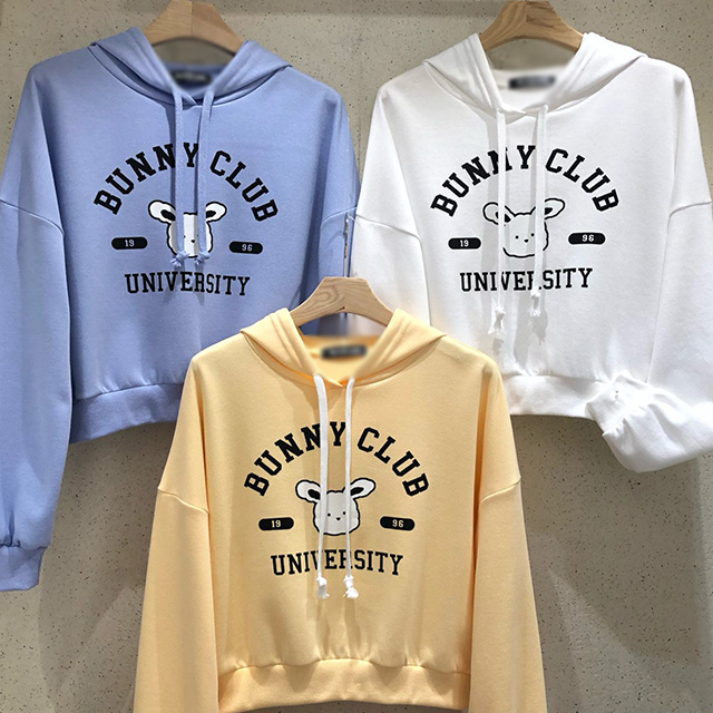 [3컬러] 버니클럽크롭후드티 여성크롭티 여성후드티 후드 후드티셔츠 여성크롭후드티 여자크롭후드티 반크롭 토끼 래빗 중고등학생 학생크롭후드티 데일리 봄 가을 캐주얼후드티 긴팔후드티